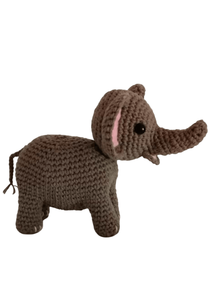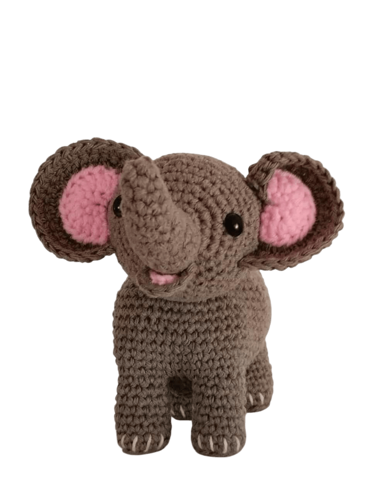 Este adorable elefantito de amigurumi es el compañero perfecto para cualquier amante de lo hecho a mano. Tejido con mucho amor y cuidado, cuenta con ojos de seguridad y una encantadora expresión que hará derretir corazones. Suaves tonos gris y rosa para un look dulce y acogedor. Ojos de seguridad para mayor durabilidad. Con sus 14 cm de alto, 18 cm de largo y 13 cm de ancho es perfecto como regalo especial, decoración o para coleccionistas de amigurumis. ¡Dale un hogar a este elefantito tierno y llénalo de amor!