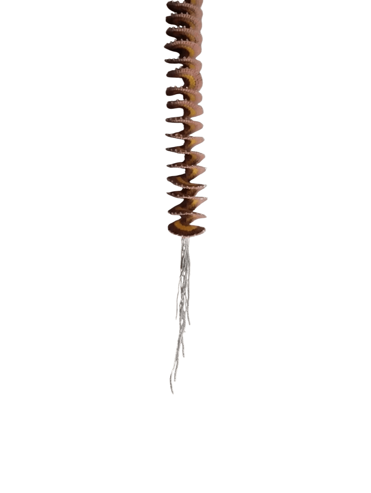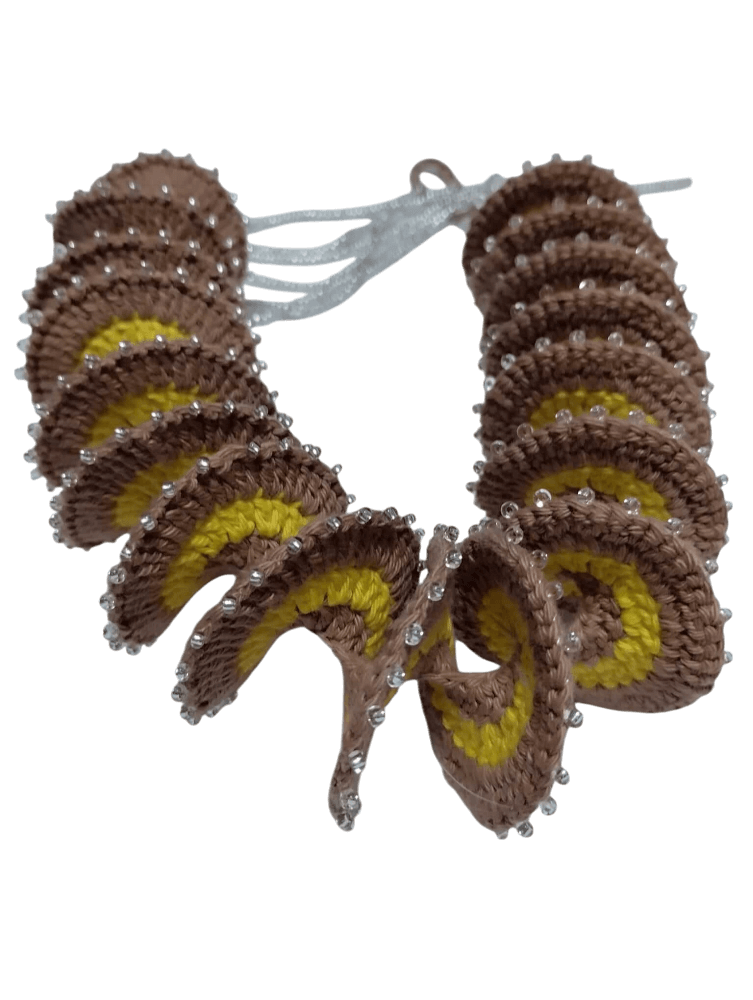 Esta hermosa espiral de viento artesanal está tejida a mano en ganchillo con un diseño de tonos cálidos y un delicado acabado en cuentas brillantes que reflejan la luz al moverse con la brisa. La parte tejida mide 35 cm y el largo total es de 60 cm, lo que la hace ideal para decorar balcones, ventanas, jardines o interiores, aportando movimiento, color y un aire único y artesanal a cualquier espacio.