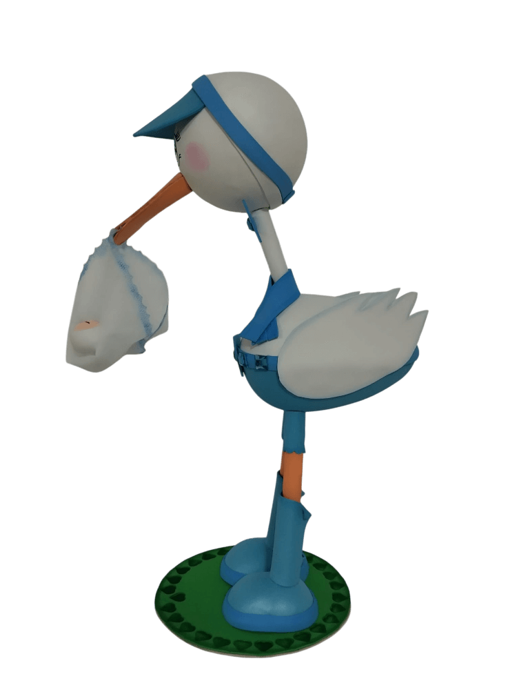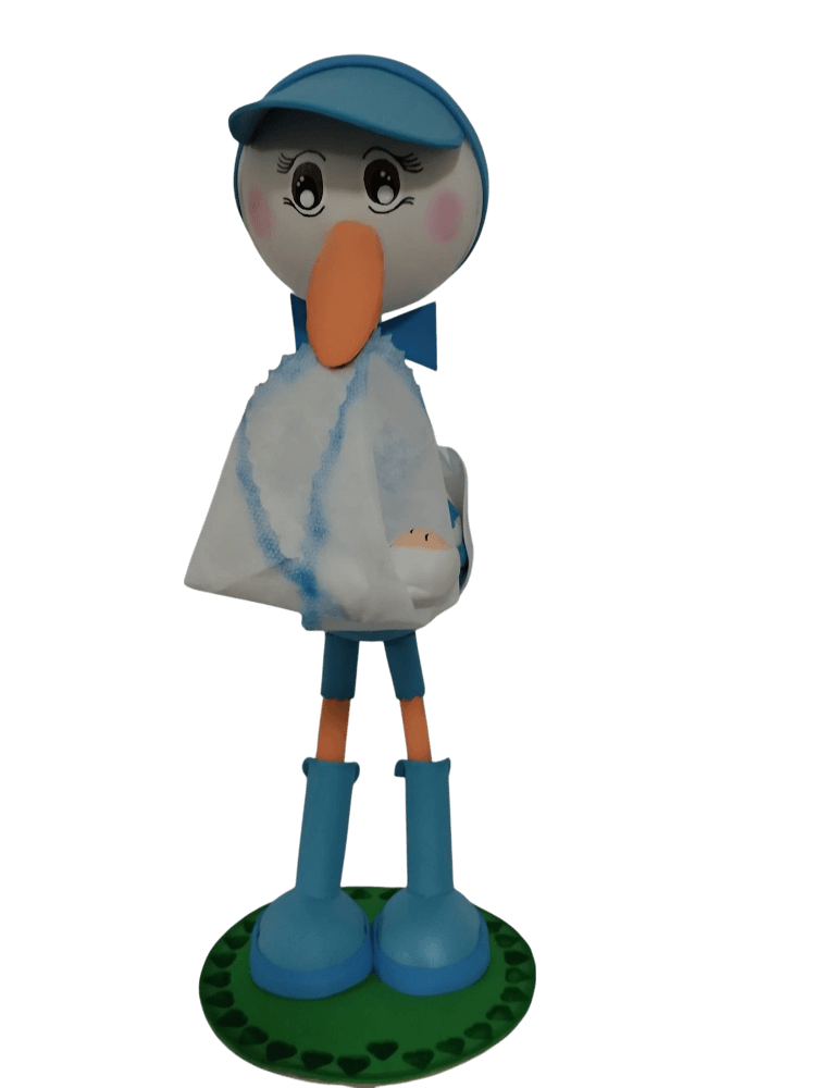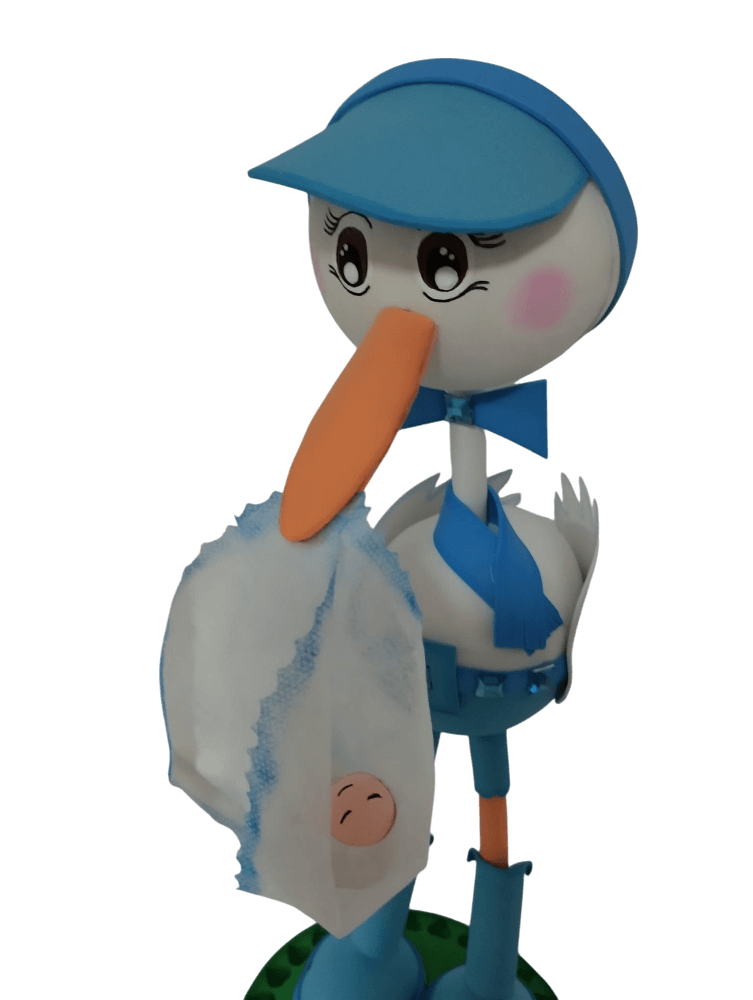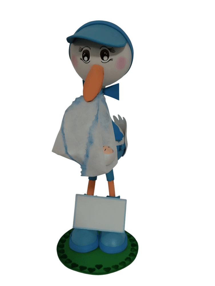 Esta bonita Fofucha Cigüeña es para celebra la llegada de un nuevo integrante a la familia, esta elaborada completamente a mano con goma eva. Con una altura de 38 cm y un ancho de 25 cm en su parte más amplia, esta simpática cigüeña, vestida en tonos azules ideales para un varón, sostiene con ternura a un bebé envuelto en una mantita. En la base, lleva un cartel en los pies diseñado para personalizar con el nombre del bebé y la fecha de nacimiento, haciendo de esta figura un recuerdo único y emotivo. Es perfecta como decoración para baby showers, regalo para recién nacidos o adorno especial en la habitación del bebé. Cada detalle está cuidadosamente trabajado para transmitir dulzura y alegría en un momento tan especial.