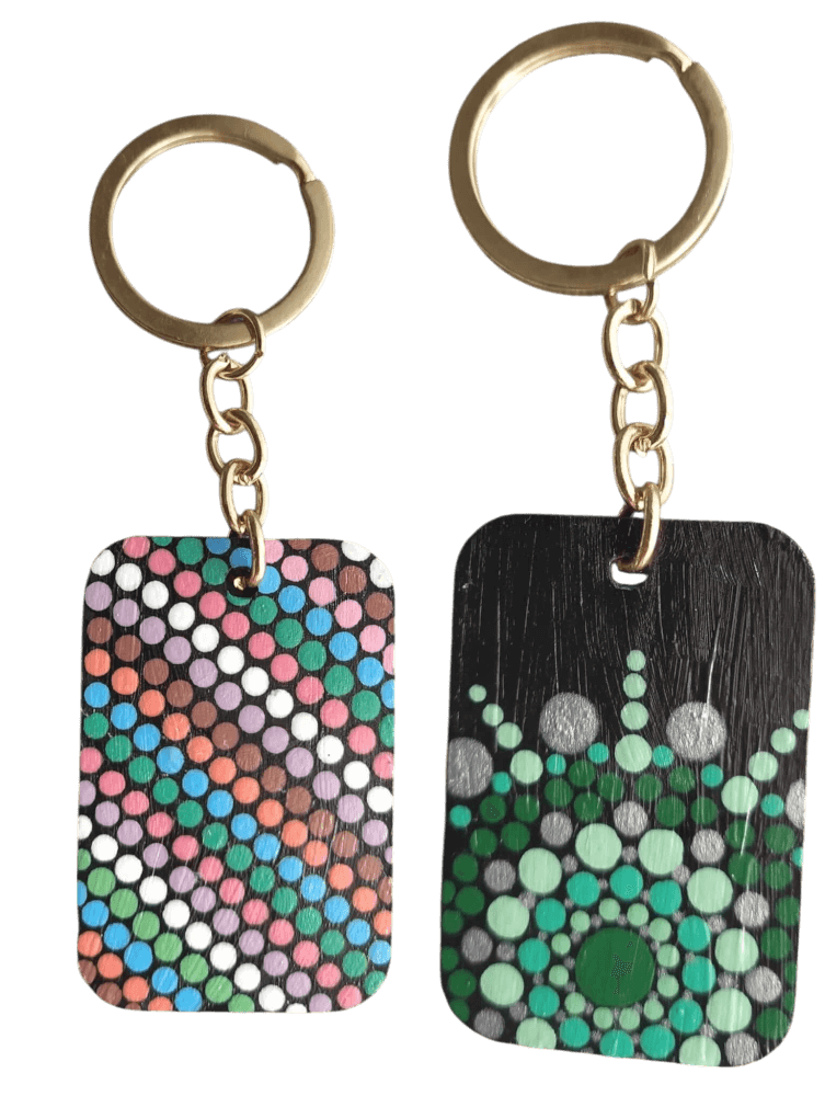 Este precioso llavero ha sido elaborado a mano con la técnica de puntillismo, combinando colores vibrantes sobre una base de madera que realza su belleza única. Cada punto ha sido creado con intención y buena energía, activando el Código Sagrado de Agesta 897897, un número que se asocia con la atracción de abundancia, prosperidad y llegada de dinero a tu vida. Por un lado, presenta un diseño lleno de color, como símbolo de riqueza y fluidez, y por el otro, un patrón elegante en tonos verdes y plateados que representa la conexión con la energía del dinero y la estabilidad. Un accesorio perfecto para llevar contigo, colocar en tu cartera o regalar a alguien que desee activar la energía de la prosperidad en su camino.
