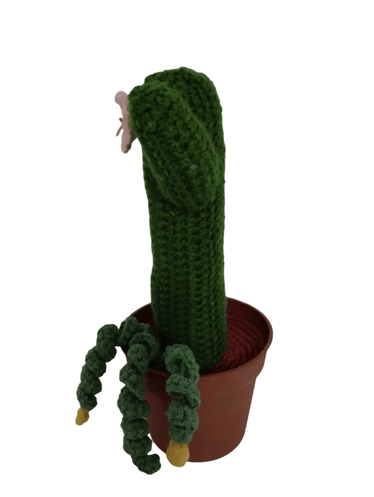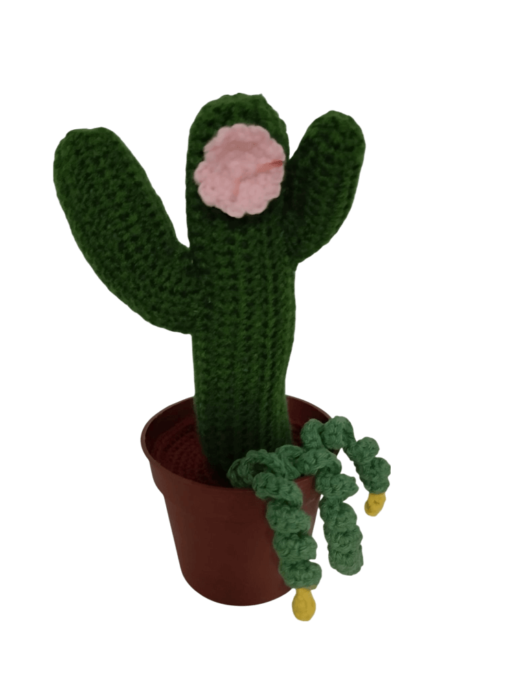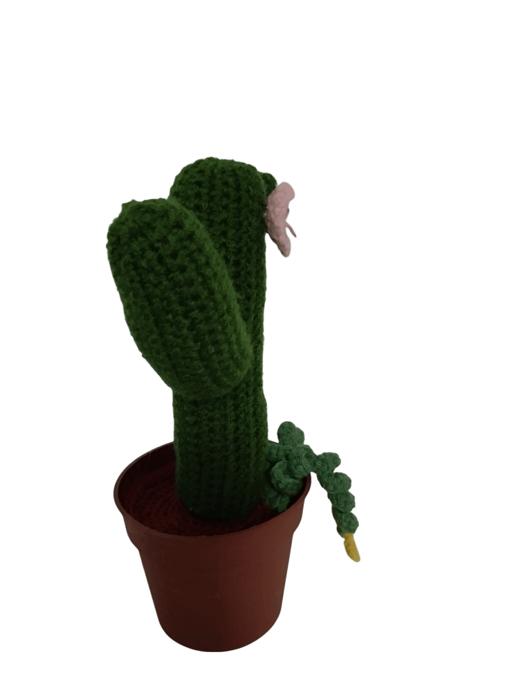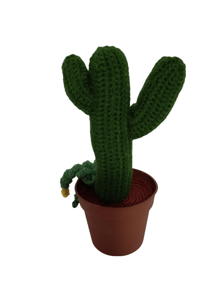 Precioso cactus amigurumi de tamaño mediano, hecho a mano con hilo de algodón. Es una pieza única, ideal para decorar cualquier espacio.