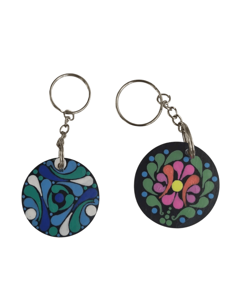 Bonito llavero Mándala realizado con la técnica del puntillismo, pintado a mano e intencionado  con el Código Sagrado de Agesta. Es una pieza única e irrepetible, su forma y su colorido se va inventando al ir lo pintando. Lleva contigo un símbolo de armonía y protección de 5 cm de diámetro y una pintura acrílica resistente. Ideal para los amantes de lo artesanal, lo hecho a mano y los único.
