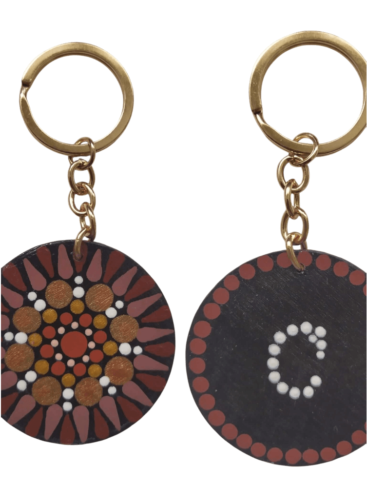 Llavero Doble Diseño – Mándala & Letra C. Dale un toque único y especial a tus llaves con este hermoso llavero artesanal de madera pintado a mano con la técnica de puntillismo. Su diseño doble cara presenta, por un lado, una elegante inicial personalizable, y por el otro, un mándala en tonos cálidos que transmite armonía y equilibrio. Con un tamaño de 5 cm de diámetro, es ligero y práctico, ideal para llevar en tus llaves, bolso o mochila. Su acabado boho y artesanal lo convierte en un regalo perfecto y exclusivo para cualquier ocasión. Cada pieza es única y hecha con amor.