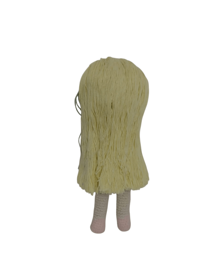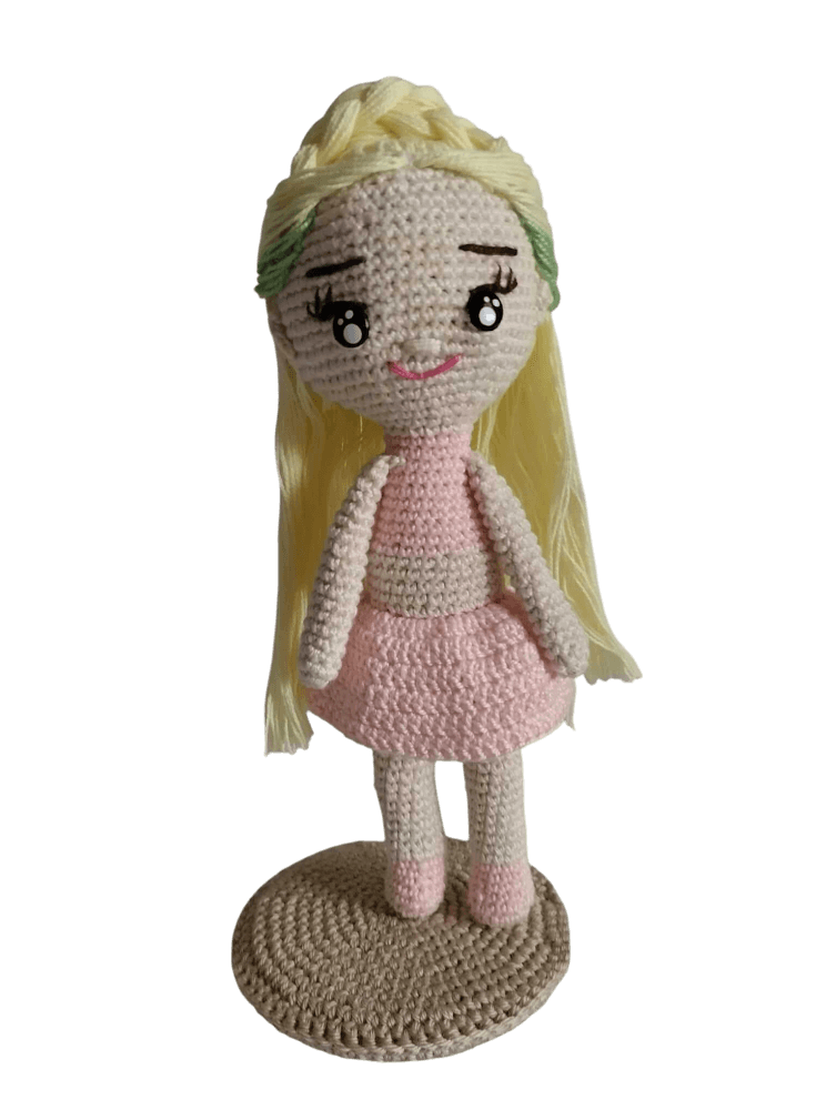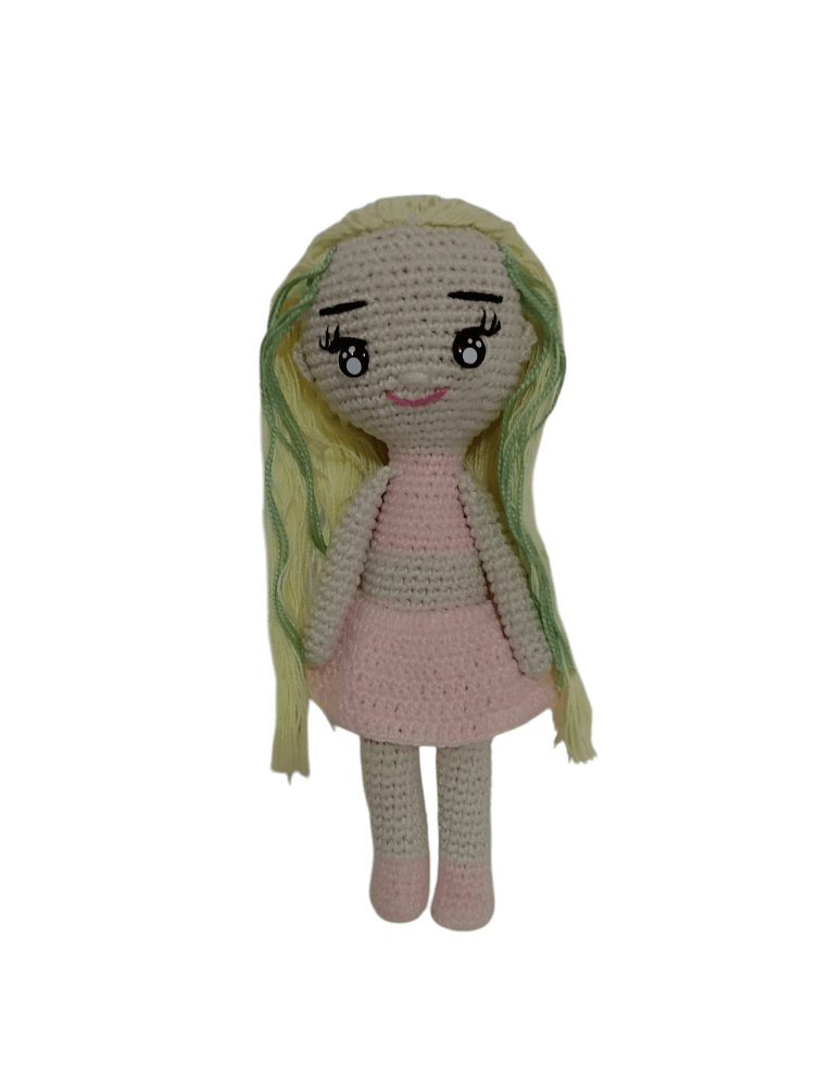 Aquí tenemos una adorable y de ensueño muñequita tejida a mano con la técnica de amigurumi. Con su cabello larguísimo en tonos rubios y con unas mechas verdes, esta deseando que la quieras peinar y la cambies de look todos los días. Con sus 20 cm y su vestimenta rosa es ideal para decorar, para jugar o regalar. Además tiene un propósito especial. Puedes elegir cuánto pagar por ella, entre 1 y 20 euros, y lo que aportes será destinado integro a la Fundación Dilaya, para contribuir a sus proyectos de solidaridad. Un regalo perfecto que combina la dulzura de un detalle personalizado con la satisfacción de saber que tu compra tiene un impacto positivo en la vida de otros.