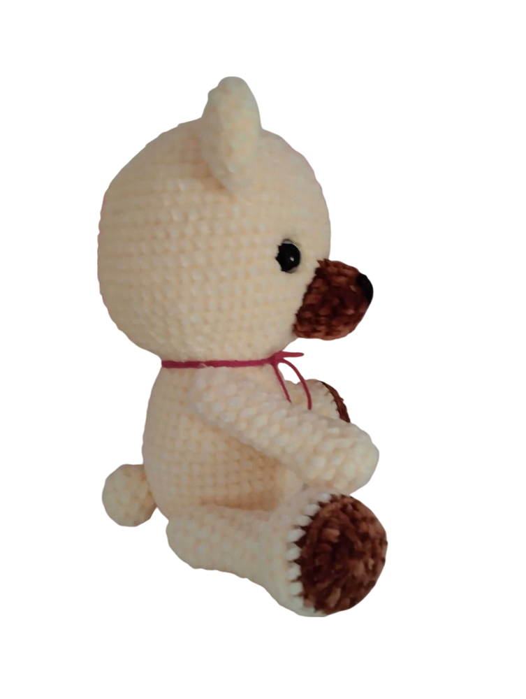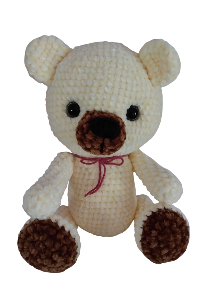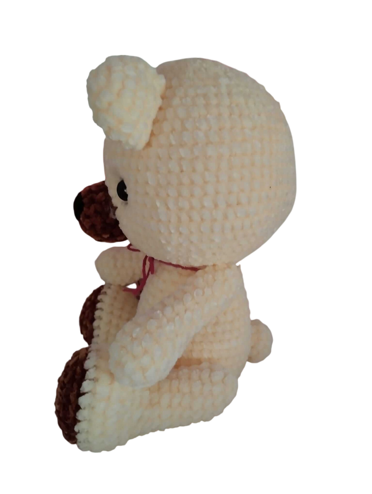 Este encantador osito esta tejido con lana efecto terciopelo, brindando una suavidad irresistible y un acabado esponjoso. Mide 30 cm y esta realizado con la técnica de amigurumi. Su diseño en tonos crema y marrón lo hace aún más tierno y especial. sus ojitos de seguridad reflejan una mirada dulce y amorosa, lista para conquistar corazones. Cuenta con articulaciones de seguridad en brazos y piernas, lo que permite cambiar su postura y hacerlo aún mas adorable. Es el regalo perfecto para sorprender con un detalle hecho a mano, lleno de amor y ternura. Ideal para todas las edades, este osito único será un compañero inseparable. ¡Hazlo tuyo y llénalo de abrazos!