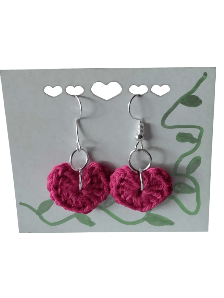 Pendientes de Corazón Hechos a Mano. Dale un toque único y romántico a tu estilo con estos hermosos pendientes de ganchillo en forma de corazón. Tejidos a mano con hilo de alta calidad, miden solo 2 cm, lo que los hace ligeros y cómodos de llevar en cualquier ocasión. Están diseñados con anzuelos de acero inoxidable para mayor durabilidad, combinando delicadeza y resistencia en una pieza única. ¡Perfectos como regalo especial o para consentirte a ti misma!